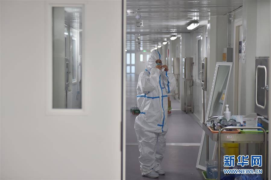 6月19日,在北京地壇醫(yī)院隔離病房外,護士在穿防護服。新華社記者彭子洋攝