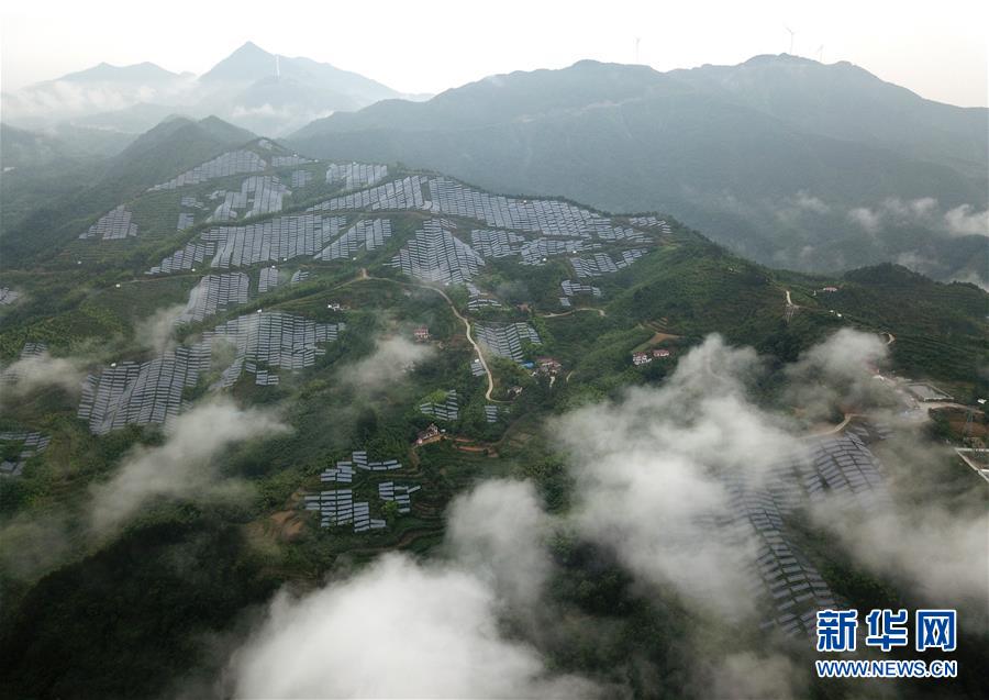 這是金寨縣桃?guī)X鄉(xiāng)高灣村的茶產(chǎn)業(yè)扶貧和光伏扶貧項目(6月20日無人機照片)。新華社記者張端攝