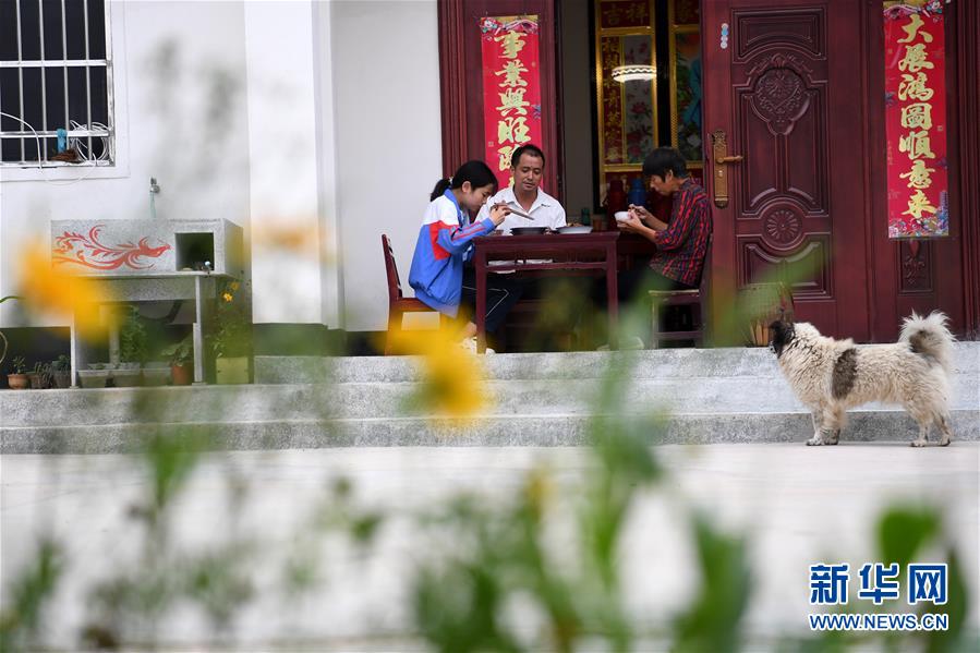 6月19日,蔡齊艷在家和父母一起吃晚餐。新華社記者劉軍喜攝