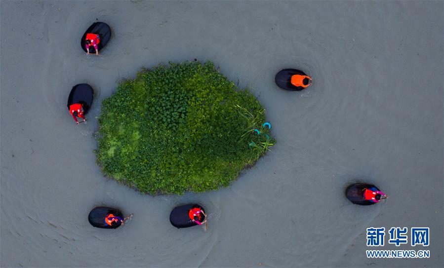 6月23日,東林鎮(zhèn)村民在泉心村荷花池參加端午劃菱桶趣味活動(無人機(jī)照片)。當(dāng)日,浙江省湖州市東林鎮(zhèn)在泉心村荷花池舉辦“慶端午劃菱桶”趣味活動。村民們劃著菱桶在水面上你追我趕,同時采收荷花和蓮蓬,呈現(xiàn)出水鄉(xiāng)特有的端午節(jié)日氛圍。在河網(wǎng)密布的東林鎮(zhèn),菱桶是水鄉(xiāng)家家戶戶都有的一種傳統(tǒng)水上勞動工具,村民在捕魚、采菱、采荷時都要用到。