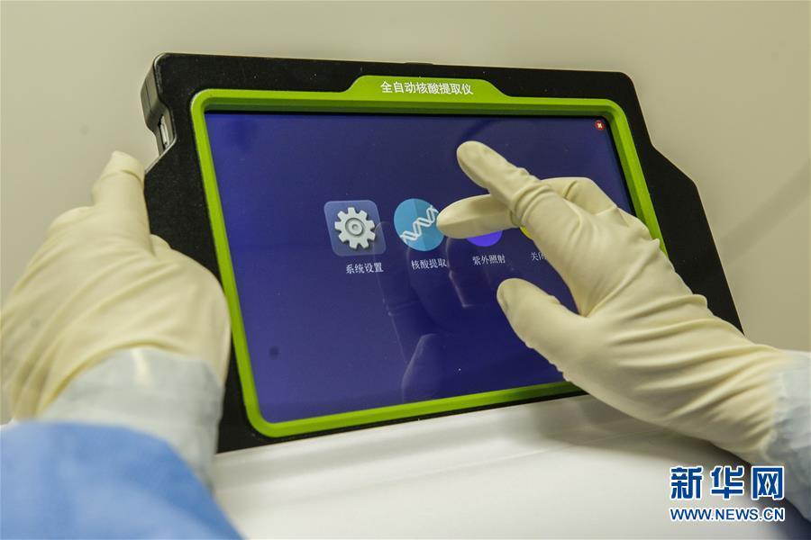 6月23日,檢驗(yàn)人員操作全自動(dòng)核酸提取儀。6月15日,北京市普仁醫(yī)院PCR實(shí)驗(yàn)室正式啟用,并立即投入到新冠肺炎病毒核酸檢測(cè)工作之中,為新冠肺炎疫情防控增添利器。普仁醫(yī)院PCR實(shí)驗(yàn)室啟用以來(lái),除了來(lái)自本院發(fā)熱門診、門急診、病房和核酸檢測(cè)采樣點(diǎn)的樣本之外,還承接了社區(qū)以及東城區(qū)集中核酸檢測(cè)點(diǎn)采集的部分樣本。新華社記者張玉薇攝