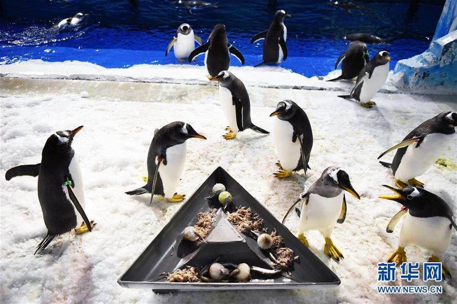 6月24日,在哈爾濱極地館企鵝生活區(qū),企鵝準備品嘗“魚粽”。當(dāng)日,哈爾濱極地館的工作人員特地準備了“魚粽”“肉粽”,讓生活在這里的極地動物也品嘗一下端午美食。新華社記者王建威攝