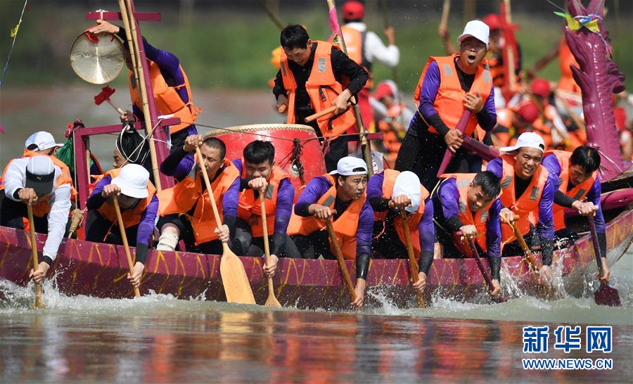 6月25日,參賽龍舟隊(duì)在比賽中。當(dāng)日是農(nóng)歷五月初五,是中國民間的傳統(tǒng)節(jié)日端午節(jié)。陜西省安康市第20屆龍舟節(jié)在漢江上舉行。每年端陽節(jié)前后,安康沿江一帶的縣區(qū)都舉行龍舟賽,賽龍舟成為民間自發(fā)的盛大活動(dòng)。新華社記者 陶明 攝
