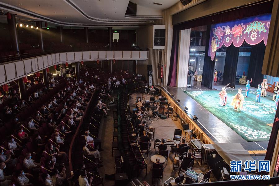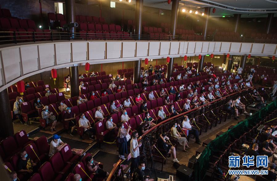 6月26日,市民掃健康碼登記后進(jìn)入武漢市人民劇院。當(dāng)日,武漢市中心7家劇場(chǎng)恢復(fù)開(kāi)放,各大文藝院團(tuán)恢復(fù)線下演出,市民再次坐在劇場(chǎng)內(nèi)觀看“戲碼頭”上群星云集、百戲薈萃。新華社記者 肖藝九 攝