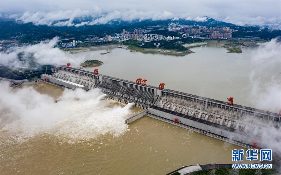 6月29日,三峽樞紐開啟泄洪孔泄洪(無人機照片)。受長江中上游強降雨影響,進(jìn)入三峽水庫的水量持續(xù)增多。為騰出一定庫容迎接近期可能到來的洪水,三峽樞紐于6月29日上午開啟兩個泄洪孔,加大下泄流量。這是三峽樞紐今年首次泄洪。28日14時,三峽水庫入庫流量達(dá)4萬立方米/秒,是27日14時的兩倍。為應(yīng)對此輪來水,長江防總要求將三峽水庫下泄流量上調(diào)至日均3.5萬立方米/秒。新華社發(fā)(鄭家裕攝)