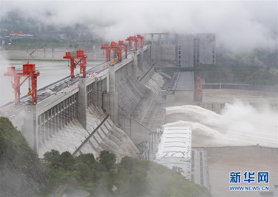6月29日,三峽樞紐開啟泄洪孔泄洪。受長江中上游強降雨影響,進入三峽水庫的水量持續(xù)增多。為騰出一定庫容迎接近期可能到來的洪水,三峽樞紐于6月29日上午開啟兩個泄洪孔,加大下泄流量。這是三峽樞紐今年首次泄洪。28日14時,三峽水庫入庫流量達4萬立方米/秒,是27日14時的兩倍。為應對此輪來水,長江防總要求將三峽水庫下泄流量上調至日均3.5萬立方米/秒。新華社發(fā)(鄭家裕攝)