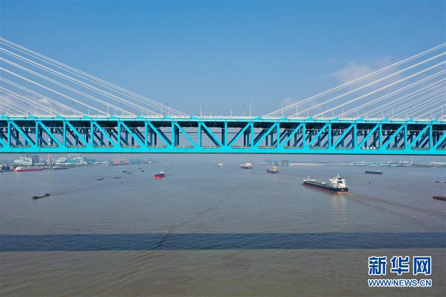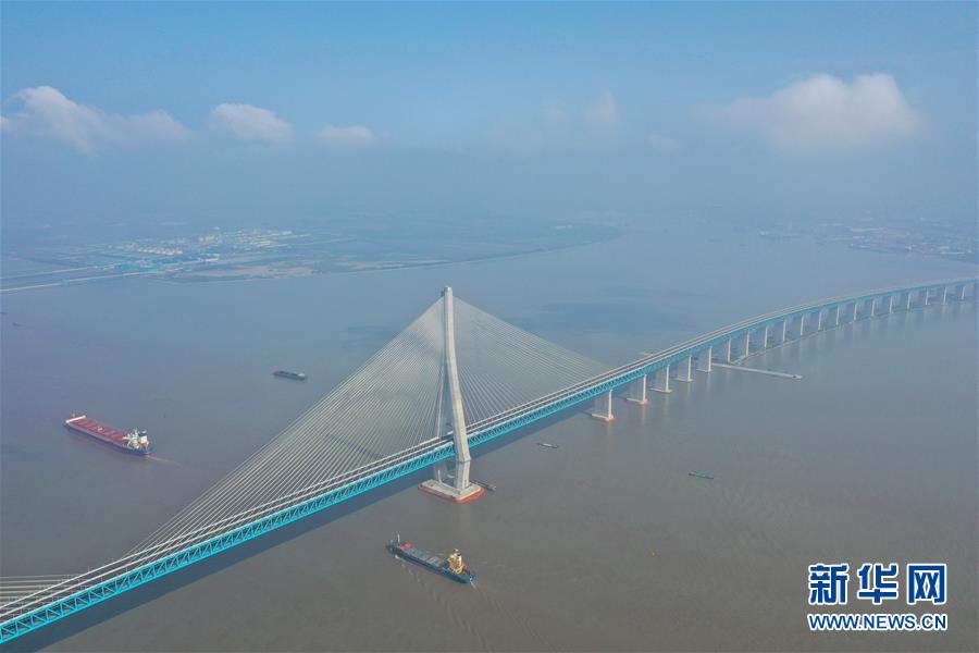 滬蘇通長(zhǎng)江公鐵大橋(6月30日攝,無(wú)人機(jī)照片)。即將于7月1日通車的滬蘇通長(zhǎng)江公鐵大橋北起江蘇南通,南至江蘇張家港,公鐵合建跨江正橋全長(zhǎng)5827米,為集合高速公路、客貨混線鐵路、高速鐵路的“三合一”過(guò)江通道,建成通車后將有效促進(jìn)長(zhǎng)三角城市群跨江融合、協(xié)同發(fā)展。新華社記者李博攝
