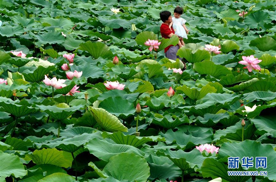 河南鄭州紫荊山公園內(nèi)盛開的荷花(6月30日攝)。新華社記者李安攝
