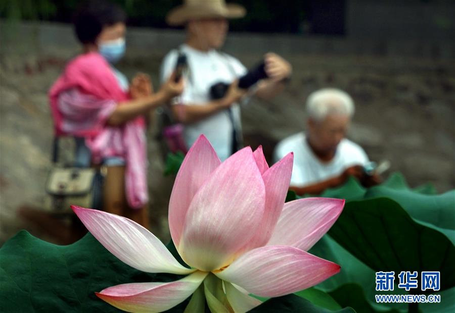 6月30日,市民在河南鄭州紫荊山公園內(nèi)觀賞荷花。新華社記者李安攝