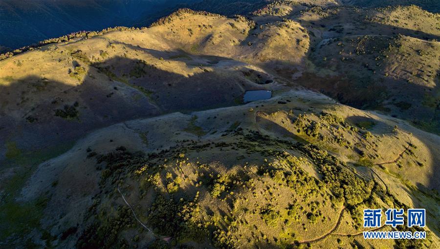 6月30日,朝霞照耀下的神田草甸與遠(yuǎn)處的群峰(無(wú)人機(jī)照片)。位于陜西省安康市嵐皋縣與重慶市城口縣交界處大巴山神田主脊北坡的神田草甸,面積超過(guò)1.1萬(wàn)畝。夏日的朝霞中,起伏的草甸仿佛一塊寬大無(wú)邊的綠色地毯,鑲嵌在大巴山上,如詩(shī)如畫(huà)。新華社記者陶明攝