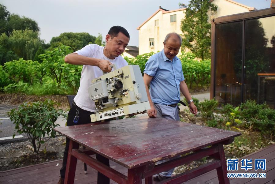 在浙江嘉興桐鄉(xiāng)市洲泉鎮(zhèn)馬鳴村,王志華、朱文炳、朱生榮、朱強四代電影放映員,“接力”放映電影五十余年。一臺放映機、幾盤膠片、一面白墻,構(gòu)成他們的“流動電影院”,“噠噠”的走帶聲轉(zhuǎn)出了光影老味道,也轉(zhuǎn)動了整村人的文化生活。第四代放映人“85后”小伙朱強從小在幕布前長大,深受父輩影響。隨著數(shù)字電影的普及,膠片電影逐漸退場。如今的他在馬鳴電影館、學(xué)校等場所進行教學(xué)、展示等活動,宣傳電影文化。對他而言,一代接一代從事電影工作,就是為了承續(xù)傳統(tǒng)?!皫煚敔斀涛覀冋J真放好每部電影,即便只有一位觀眾,我們也不會讓它停機?!敝鞆娬f。