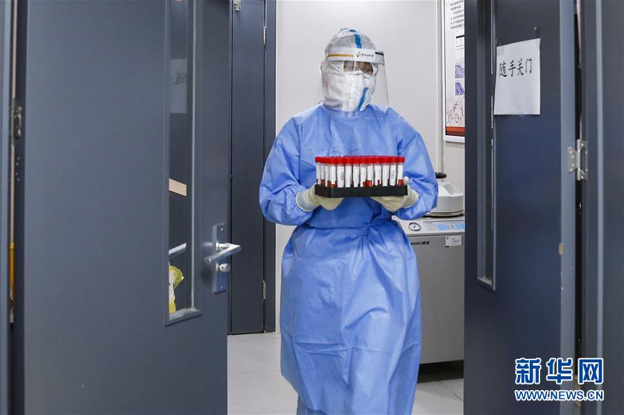 7月3日,中日友好醫(yī)院檢驗科新冠核酸檢測實驗室的檢驗人員閆克芹運送經(jīng)過滅活的樣本。新華社記者張玉薇攝