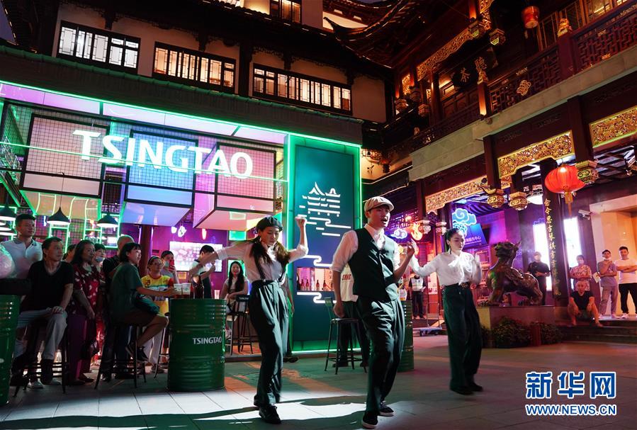 7月3日,游人在上海豫園中心廣場(chǎng)觀看街舞表演。從7月第一個(gè)周末起,上海豫園原有的“豫園六點(diǎn)半”集市全面升級(jí),煥彩燈光、演藝活動(dòng)和花車(chē)集市全線(xiàn)更新,讓市民和游客在觀燈、觀人、觀演的沉浸式體驗(yàn)中,享受夏日特色的“食玩”樂(lè)趣。新華社記者 劉穎 攝