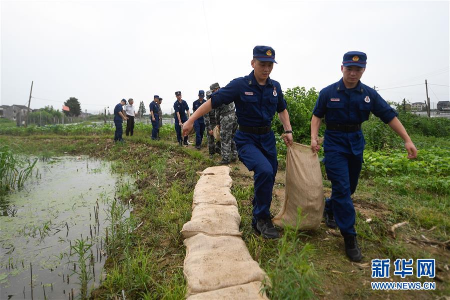 7月7日,吳興區(qū)消防救援大隊(duì)隊(duì)員在織里鎮(zhèn)曹家籪村幫助村民加固防洪堤。近日,位于浙江北部的湖州市遭遇多輪降雨,東部平原河網(wǎng)普遍超警戒水位,水庫(kù)山塘高位運(yùn)行。7月5日12時(shí)30分,湖州市人民政府防汛防旱指揮部將防汛應(yīng)急響應(yīng)提升至Ⅲ級(jí),要求各地密切監(jiān)測(cè)汛情,切實(shí)做好各項(xiàng)防范工作,確保安全度汛。新華社記者黃宗治攝