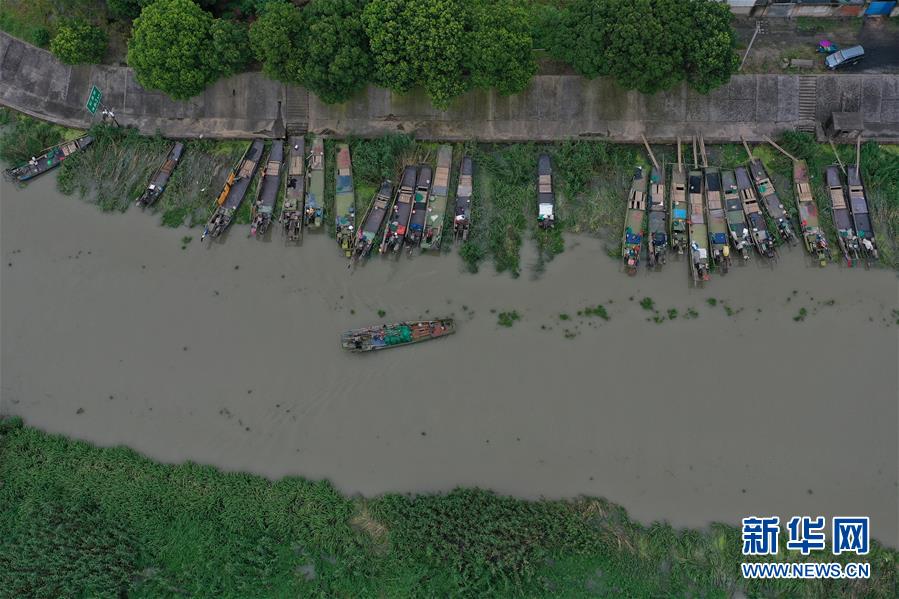 在吳興高新區(qū)幻溇村的避風(fēng)港,停泊了大批漁船(7月7日攝,無人機(jī)照片)。近日,位于浙江北部的湖州市遭遇多輪降雨,東部平原河網(wǎng)普遍超警戒水位,水庫山塘高位運(yùn)行。7月5日12時(shí)30分,湖州市人民政府防汛防旱指揮部將防汛應(yīng)急響應(yīng)提升至Ⅲ級,要求各地密切監(jiān)測汛情,切實(shí)做好各項(xiàng)防范工作,確保安全度汛。新華社記者黃宗治攝
