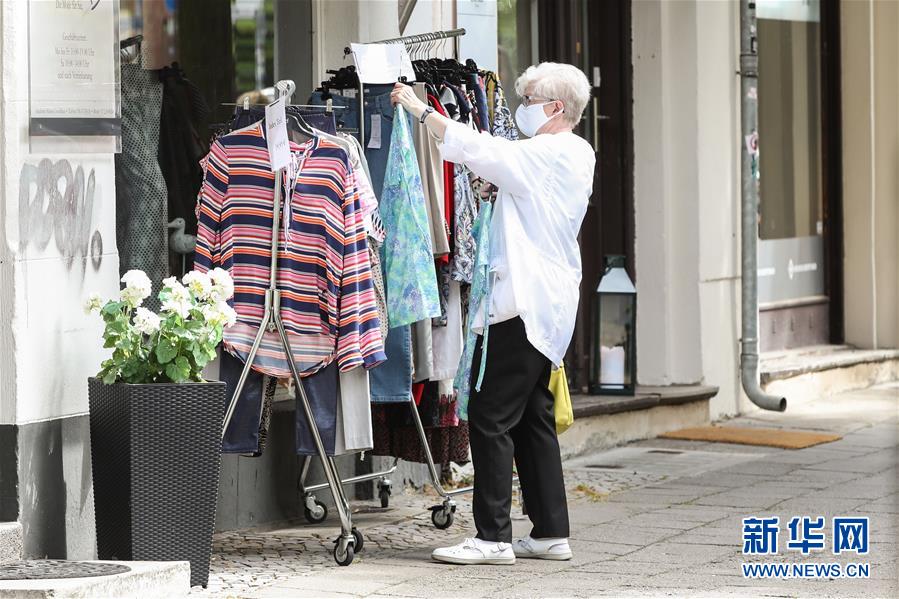 7月7日,一名佩戴口罩的女子在德國首都柏林的一家商店外挑選衣服。針對有地方官員呼吁取消民眾乘坐公交車和在商場購物時須戴口罩的規(guī)定,德國聯(lián)邦政府6日表示,支持延續(xù)“口罩強(qiáng)制令”。4月底,德國全部16個聯(lián)邦州陸續(xù)出臺“口罩強(qiáng)制令”,即居民在乘坐公交車和購物時須佩戴口罩。新華社記者單宇琦攝