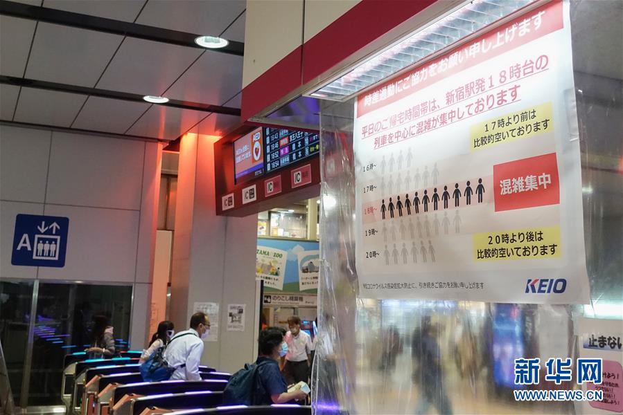 7月9日,日本東京新宿車(chē)站的一處入口上貼出告示,顯示該線路的人流量統(tǒng)計(jì),建議乘客錯(cuò)峰出行。據(jù)日本廣播協(xié)會(huì)電視臺(tái)9日統(tǒng)計(jì),截至當(dāng)?shù)貢r(shí)間9日20時(shí)40分,日本當(dāng)日新增新冠確診病例354例,是5月2日以來(lái)該國(guó)單日新增確診首次超過(guò)300例,累計(jì)確診20767例,累計(jì)死亡982例。據(jù)統(tǒng)計(jì),東京都當(dāng)天新增確診224例,創(chuàng)當(dāng)?shù)爻霈F(xiàn)疫情以來(lái)單日新增確診新高。新華社記者杜瀟逸攝
