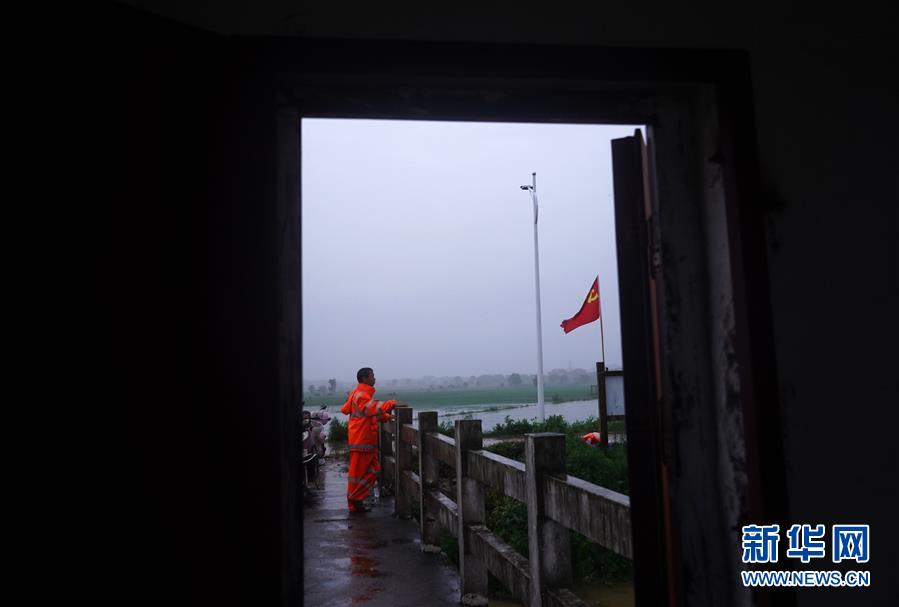 7月9日,邵忠如在圩堤上觀察水情。新華社記者萬(wàn)象攝