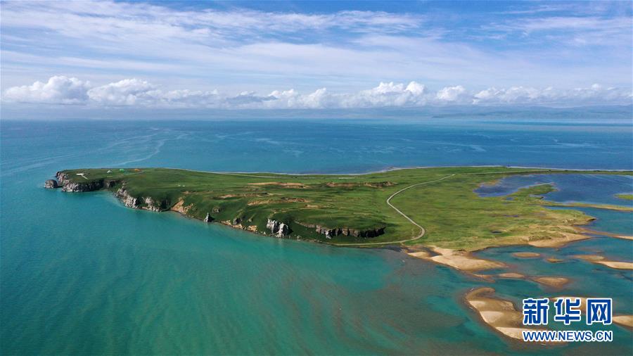 7月10日拍攝的青海湖風光(無人機照片)。盛夏時節(jié),被譽為“中國最美湖泊”的青海湖畔景色宜人,藍天、白云、湖水與草原組成一幅壯美的畫卷。新華社記者張宏祥攝
