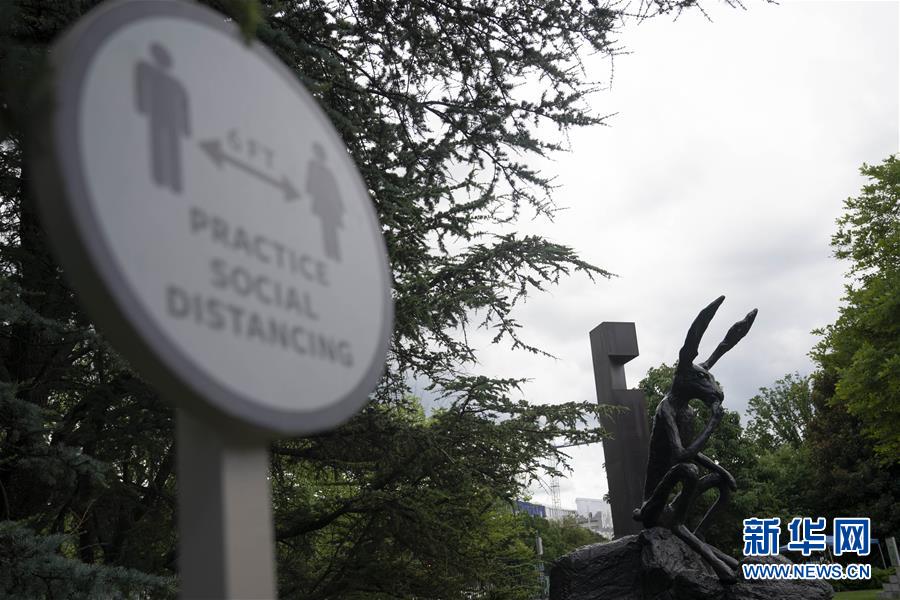 7月11日,在美國華盛頓的國家藝術畫廊雕塑公園,一座雕塑旁立著保持社交距離的提示牌。美國約翰斯·霍普金斯大學11日發(fā)布的新冠疫情最新統(tǒng)計數據顯示,截至美國東部時間11日18時34分(北京時間12日6時34分),美國累計確診病例3242073例。新華社記者劉杰攝