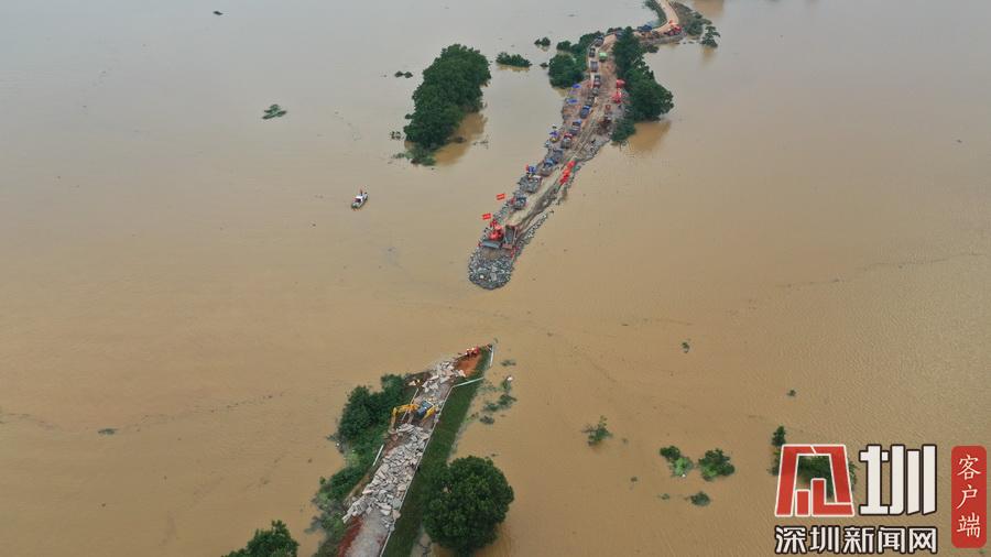2020年7月13日,江西鄱陽縣問桂道圩,決口封堵進(jìn)入最后攻堅(jiān)階段。受持續(xù)強(qiáng)降雨影響,7月8日20時(shí)35分,位于江西省上饒市鄱陽縣鄱陽鎮(zhèn)的問桂道圩堤出現(xiàn)漫決險(xiǎn)情,導(dǎo)致良田、村莊受淹,受淹村民已安全轉(zhuǎn)移。連日來,中國(guó)安能第二工程局在此處對(duì)問桂道決口圩堤進(jìn)占填筑,目前進(jìn)入最后攻堅(jiān)階段。