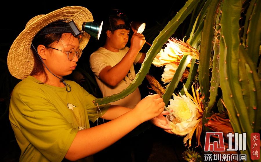 廣西融水:火龍果果農(nóng)夏夜“點(diǎn)花”忙