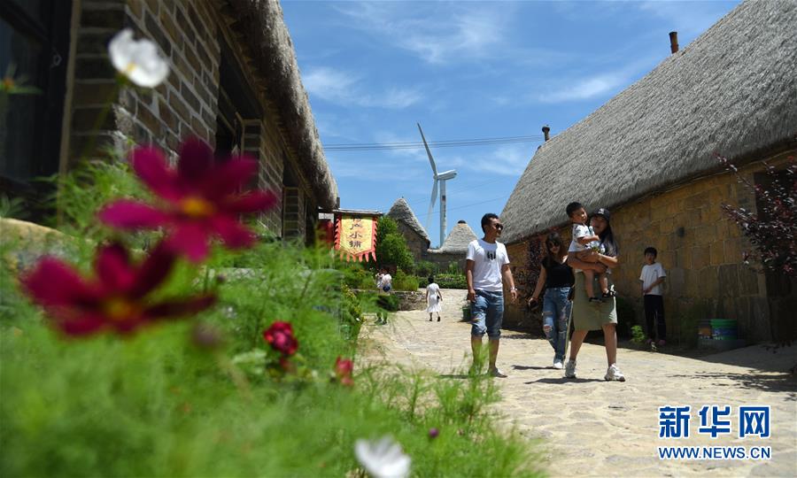 7月17日,游客在以傳統(tǒng)海草民居聞名的山東榮成東楮島村觀光。近年來,山東省榮成市重點發(fā)展特色海洋旅游產(chǎn)業(yè),打造眾多國家級海洋牧場,保留修復(fù)傳統(tǒng)海草民居,吸引游客前來觀光體驗。如今特色海洋旅游已逐漸成為榮成經(jīng)濟發(fā)展新的增長點。新華社記者王凱攝