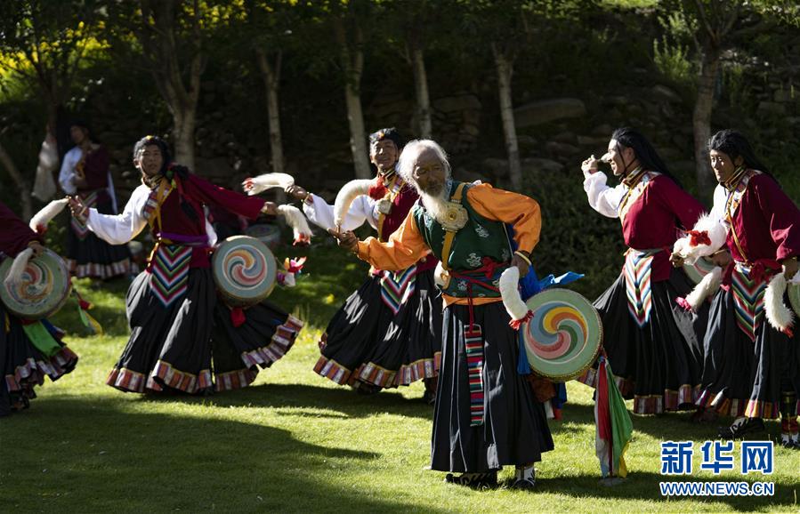 尼瑪老人的弟子們在表演“久河卓舞”(7月1日攝)。新華社記者普布扎西攝