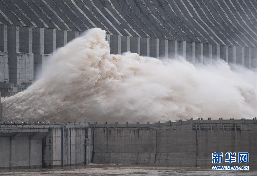 7月19日,三峽樞紐開啟泄洪深孔泄洪。19日20時,三峽水庫入庫流量4.6萬立方米/秒,較本輪洪水的峰值6.1萬立方米/秒下降了1.5萬立方米/秒。“長江2020年第2號洪水”平穩(wěn)通過三峽大壩。新華社記者肖藝九攝