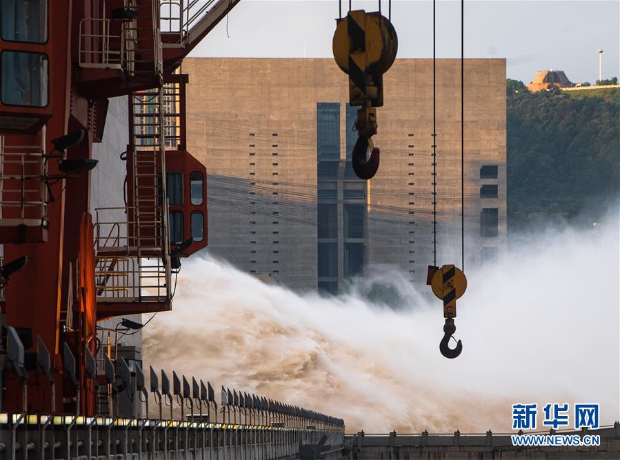 7月19日,三峽樞紐開啟泄洪深孔泄洪。19日20時(shí),三峽水庫入庫流量4.6萬立方米/秒,較本輪洪水的峰值6.1萬立方米/秒下降了1.5萬立方米/秒?!伴L江2020年第2號(hào)洪水”平穩(wěn)通過三峽大壩。新華社記者肖藝九攝