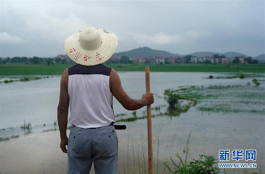 7月9日,邵忠如在圩堤上觀察水情,不遠(yuǎn)處就是他的村子。邵忠如是江西省樂(lè)平市樂(lè)港鎮(zhèn)邵灣村黨支部書(shū)記,今年56歲,負(fù)責(zé)中洲圩中一段700多米長(zhǎng)的圩堤的巡堤守堤工作。身前是洪水,身后是村子和稻田,老邵不敢有半點(diǎn)疏忽。6天6夜,老邵和村民們不間斷地值守在圩堤上,一天4個(gè)班,一班6人,每半小時(shí)巡堤一次,發(fā)現(xiàn)險(xiǎn)情立即處置。作為村支書(shū),老邵更是幾乎全天都在圩堤上,實(shí)在困了才會(huì)睡一會(huì)兒。新華社記者萬(wàn)象攝