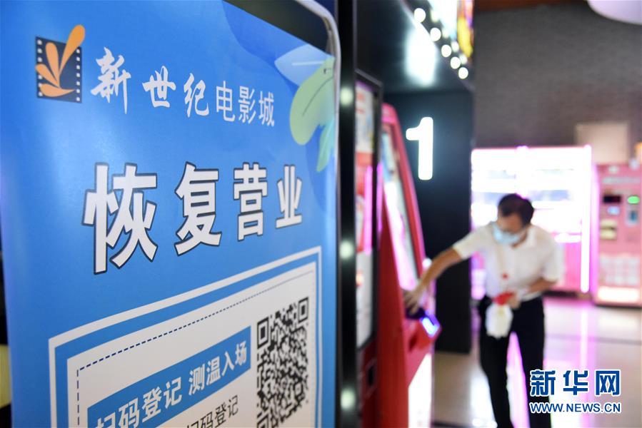 7月20日,濟(jì)南新世紀(jì)電影城陽光100店的員工在對影院設(shè)施進(jìn)行消殺。當(dāng)日,山東濟(jì)南市部分電影院在嚴(yán)格防控疫情的基礎(chǔ)上陸續(xù)恢復(fù)開放。新華社記者王凱攝