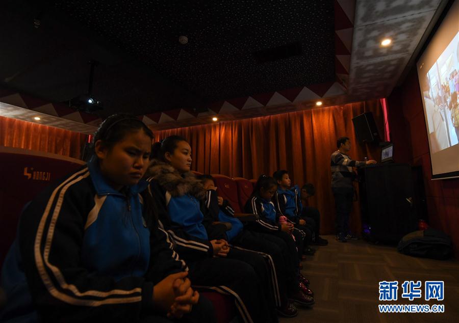 2019年12月3日,視障孩子在聽(tīng)蘇日娜解說(shuō)電影。當(dāng)日,家住內(nèi)蒙古呼和浩特市的蘇日娜來(lái)到內(nèi)蒙古圖書(shū)館內(nèi)的殘障人圖書(shū)館,為視障人士舉辦詩(shī)歌朗誦會(huì)并解說(shuō)電影。新華社記者彭源攝
