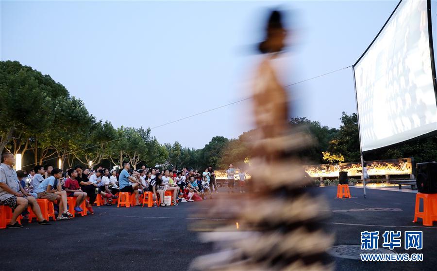 2019年7月7日,人們?cè)谏虾ih行體育公園內(nèi)的露天電影院里看電影。新華社記者方喆攝