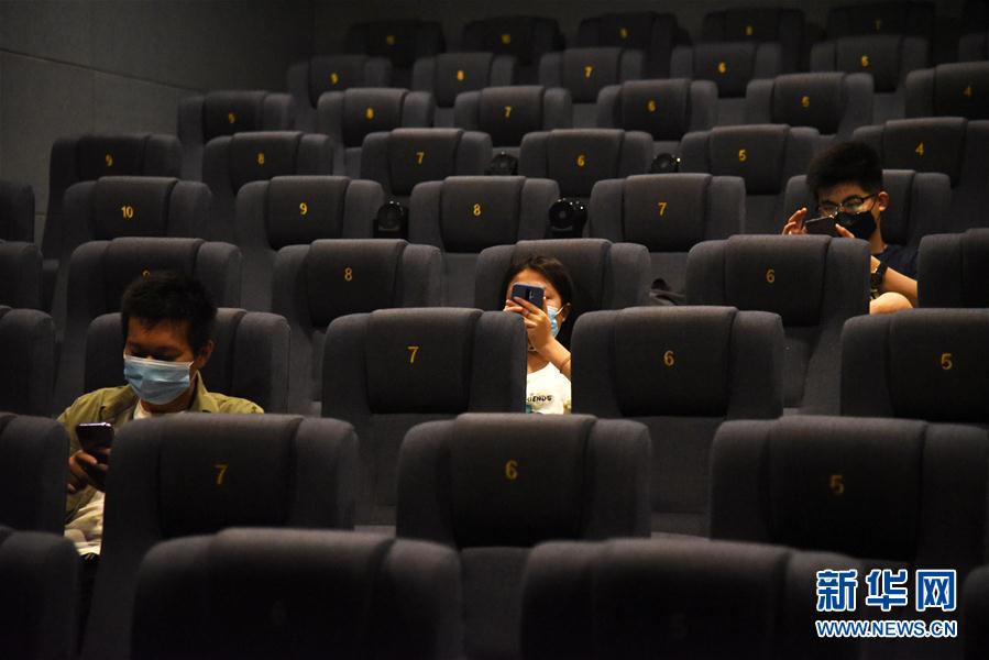 2020年7月20日,濟南新世紀電影城陽光100店的觀眾隔位就座。新華社記者王凱攝