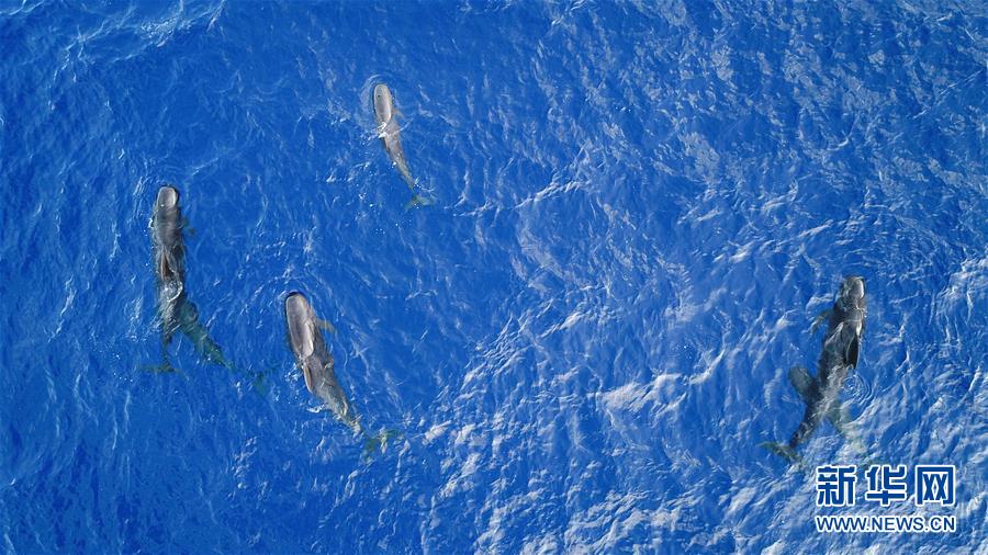 這是7月20日在南海某海域拍攝的短肢領航鯨(無人機照片)。新華社記者張麗蕓攝