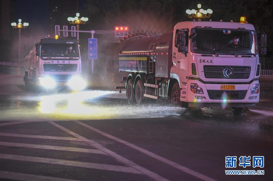 7月20日,烏魯木齊市天山區(qū)城管局清運(yùn)隊(duì)的三臺工作車輛在市區(qū)光明路進(jìn)行消殺作業(yè)。烏魯木齊市天山區(qū)城管局自7月17日起,對天山區(qū)的主次干道76條及235條巷道進(jìn)行集中消殺。目前,烏魯木齊市對重點(diǎn)區(qū)域進(jìn)行全面消毒消殺。新華社記者趙戈攝