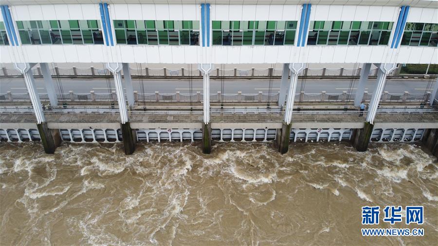 這是7月23日在安徽省阜南縣拍攝的正在關(guān)閘的淮河王家壩閘(無人機照片)。當日13時,淮河干流王家壩閘關(guān)閘,停止向蒙洼蓄洪區(qū)泄洪。新華社記者張端攝