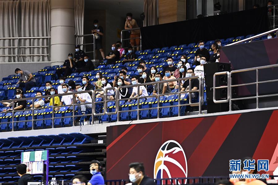 7月26日,觀眾觀看上海久事隊與山東西王隊的比賽。該場比賽首次恢復(fù)觀眾現(xiàn)場觀看比賽。當(dāng)日,在山東青島舉行的2019-2020賽季中國男子籃球職業(yè)聯(lián)賽(CBA)復(fù)賽第二階段(嶗山賽區(qū))比賽中,醫(yī)護(hù)人員、教師、公安戰(zhàn)線人士通過官方購票平臺,完成包括核酸檢測在內(nèi)的相關(guān)流程后進(jìn)場觀看了上海久事隊迎戰(zhàn)山東西王隊的比賽。觀賽期間,觀賽者須全程佩戴口罩,對號入座,嚴(yán)格保持間隔一米就座。退場時,觀眾須按照自后向前、先兩邊后中間的順序,保持“一米線”社交距離有序退場。新華社記者 郭緒雷 攝