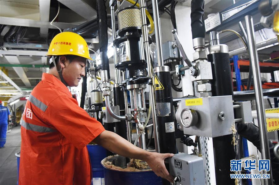 7月29日,“萬里黃河第一隧”——濟(jì)南黃河隧道工程施工人員在查看盾構(gòu)機(jī)工作情況。新華社記者王凱攝