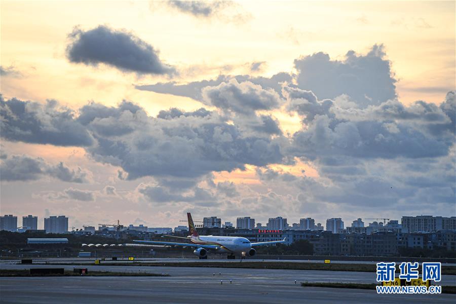 這是7月30日在??诿捞m國際機場二期擴建項目拍攝的試飛現(xiàn)場。新華社記者蒲曉旭攝
