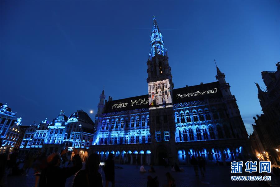 7月29日,比利時布魯塞爾大廣場的市政廳外墻上投射出“想念你,節(jié)日”的字樣。7月29日,比利時布魯塞爾大廣場舉行大型聲光秀。藝術(shù)家在市政廳等歷史建筑上投影文字和圖案,紀(jì)念這個夏天受新冠疫情影響而不能如期舉辦的文化活動。新華社記者鄭煥松攝