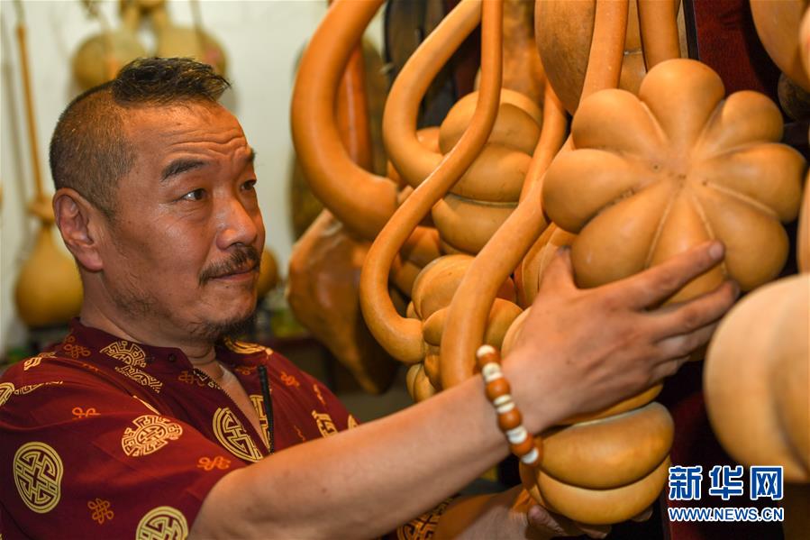 8月5日,侯景偉挑選適合創(chuàng)作的葫蘆。今年55歲的吉林四平人侯景偉自幼與家人學(xué)習(xí)雕刻、烙畫藝術(shù)。經(jīng)過多年潛心研究,他將浮雕和烙畫工藝相結(jié)合,通過拋光、起稿、雕刻、烙燙、套色等十余道工藝,制作展現(xiàn)傳統(tǒng)文化、民俗故事的葫蘆工藝品。2020年,侯景偉被評(píng)為四平市非物質(zhì)文化遺產(chǎn)項(xiàng)目侯氏葫蘆雕刻烙畫代表性傳承人。他說:“希望有更多人加入到非遺傳承隊(duì)伍中,讓小葫蘆‘講’出更多民俗故事?!毙氯A社記者張楠攝