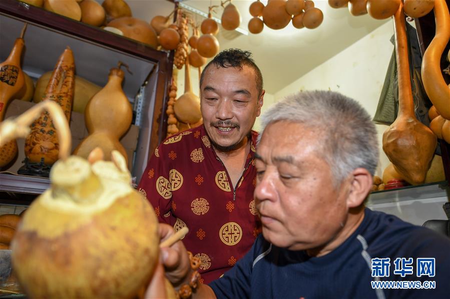 8月5日,侯景偉(左)向徒弟金志勇傳授技藝。今年55歲的吉林四平人侯景偉自幼與家人學(xué)習(xí)雕刻、烙畫藝術(shù)。經(jīng)過多年潛心研究,他將浮雕和烙畫工藝相結(jié)合,通過拋光、起稿、雕刻、烙燙、套色等十余道工藝,制作展現(xiàn)傳統(tǒng)文化、民俗故事的葫蘆工藝品。2020年,侯景偉被評(píng)為四平市非物質(zhì)文化遺產(chǎn)項(xiàng)目侯氏葫蘆雕刻烙畫代表性傳承人。他說:“希望有更多人加入到非遺傳承隊(duì)伍中,讓小葫蘆‘講’出更多民俗故事?!毙氯A社記者張楠攝