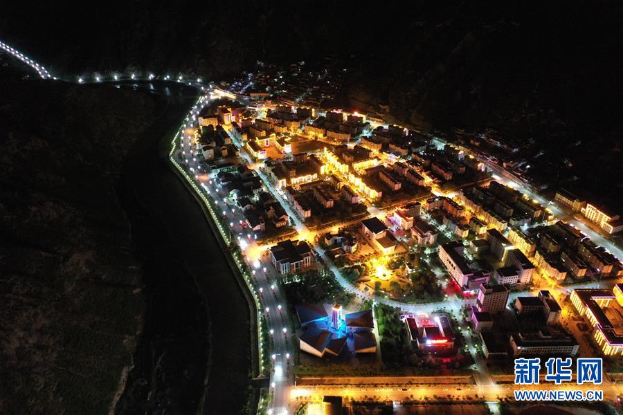 這是7月15日拍攝的舟曲縣新縣城夜景(無(wú)人機(jī)照片)。新華社記者杜哲宇攝