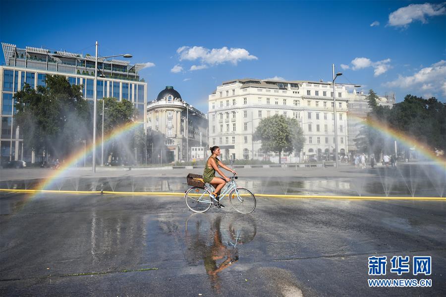 炎炎夏日里,水邊、林間、花叢……都能看到人們消暑納涼的身影。人們在享受夏日快樂的同時,也能體會到絲絲清涼。這是7月28日,一名女子騎車經(jīng)過奧地利維也納一處廣場的噴水設施。新華社記者郭晨攝