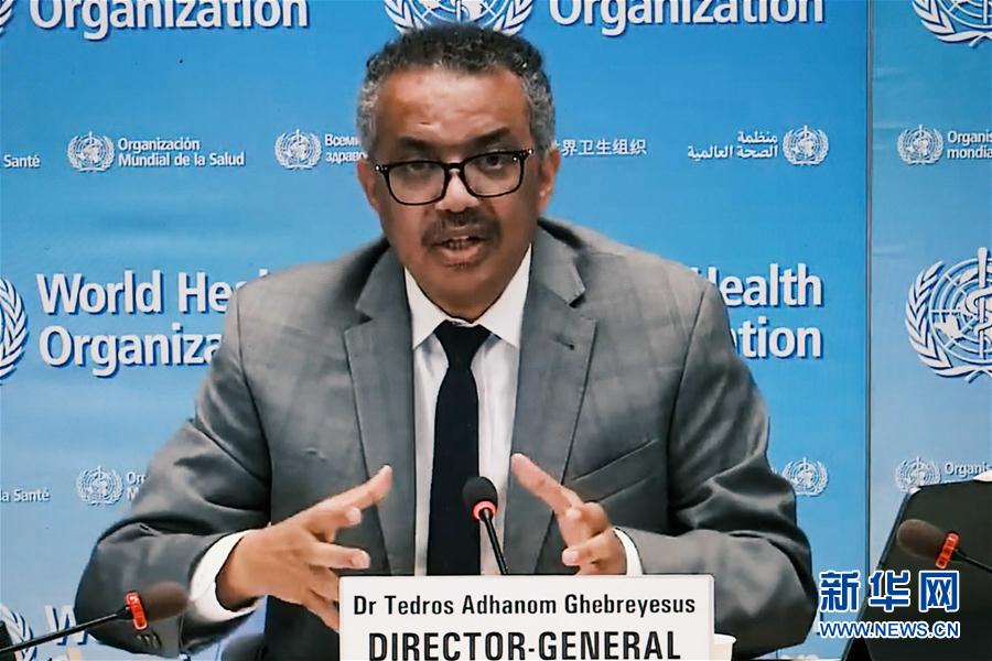 這是8月6日在比利時布魯塞爾拍攝的世界衛(wèi)生組織總干事譚德塞在瑞士日內(nèi)瓦出席線上記者會的視頻畫面。世界衛(wèi)生組織6日最新數(shù)據(jù)顯示,全球新冠死亡病例累計已超70萬例。新華社記者張鋮攝