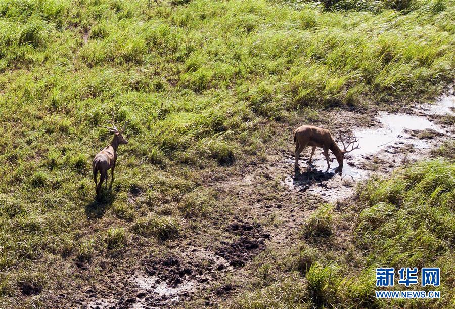 這是8月7日在東洞庭湖麋鹿和鳥類救治避難中心拍攝的麋鹿(無人機照片)。位于湖南省岳陽市的東洞庭湖麋鹿和鳥類救治避難中心成立于2016年9月,占地400余畝,中心自建成后就承擔(dān)起東洞庭湖區(qū)域全部麋鹿的救援、醫(yī)治、康復(fù)和喂養(yǎng)任務(wù)。目前該中心共有14只麋鹿正在接受救助。新華社記者李鑫攝