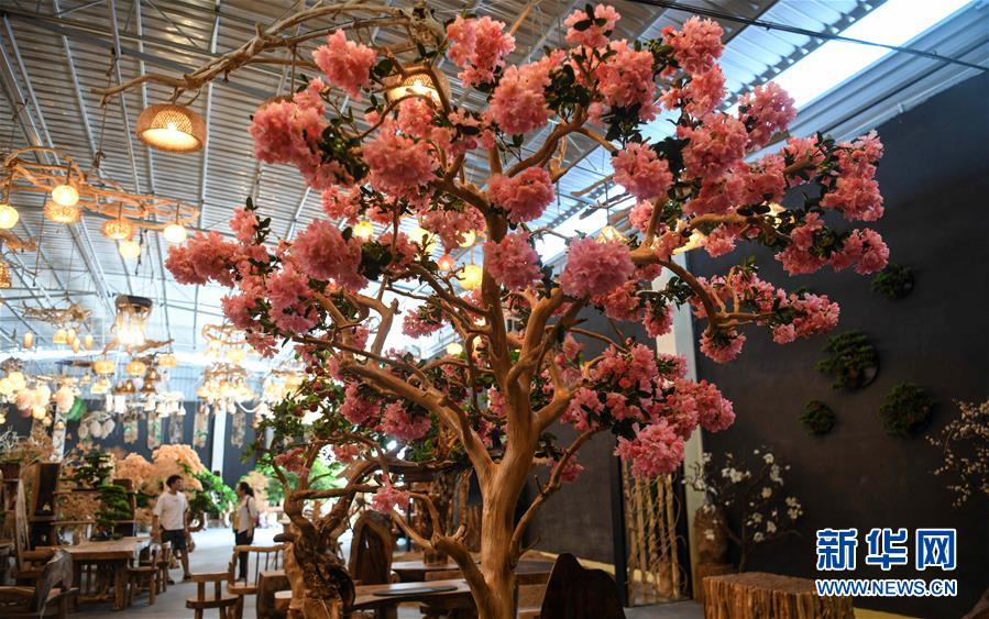 這是8月7日在永??h永安鄉(xiāng)根雕工藝品就業(yè)扶貧車間拍攝的根雕工藝品。2017年以來,廣西桂林市永??h永安鄉(xiāng)通過幫扶返鄉(xiāng)青年創(chuàng)業(yè)的方式,建立起根雕工藝品就業(yè)扶貧車間,組織貧困群眾進車間務(wù)工學(xué)藝,把當?shù)刎S富的朽木和柑橘樹根枝資源利用起來,加工成盆景、茶桌、吊燈等根雕工藝品,不僅幫助貧困群眾在家門口掌握一技之長,還讓他們在脫貧摘帽后實現(xiàn)穩(wěn)定增收。新華社記者張愛林攝