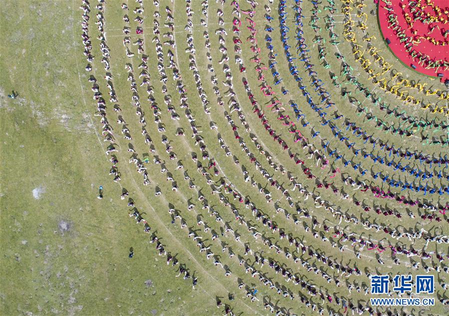 西藏首屆弦子舞展演現(xiàn)場(8月7日攝,無人機(jī)照片)。當(dāng)日,西藏首屆弦子舞展演在昌都市芒康縣舉行。眾多演員同臺(tái)獻(xiàn)藝,表演國家級(jí)非物質(zhì)文化遺產(chǎn)弦子舞,吸引西藏各地的群眾前來觀看。新華社記者孫非攝